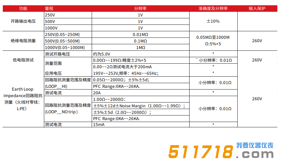 250V/500V/1000V直流電壓絕緣電阻測試