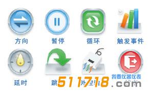 · 提供8種邏輯控制模塊:方向、延時、事件觸發(fā)、狀態(tài)輸出、暫停、跳轉、循環(huán)、停止